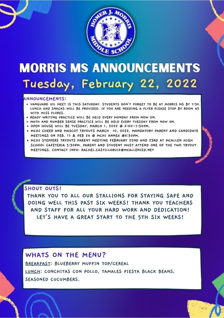 Check out what’s on the morning announcements for Monday, February 28, 2022! 🎉👍🙌